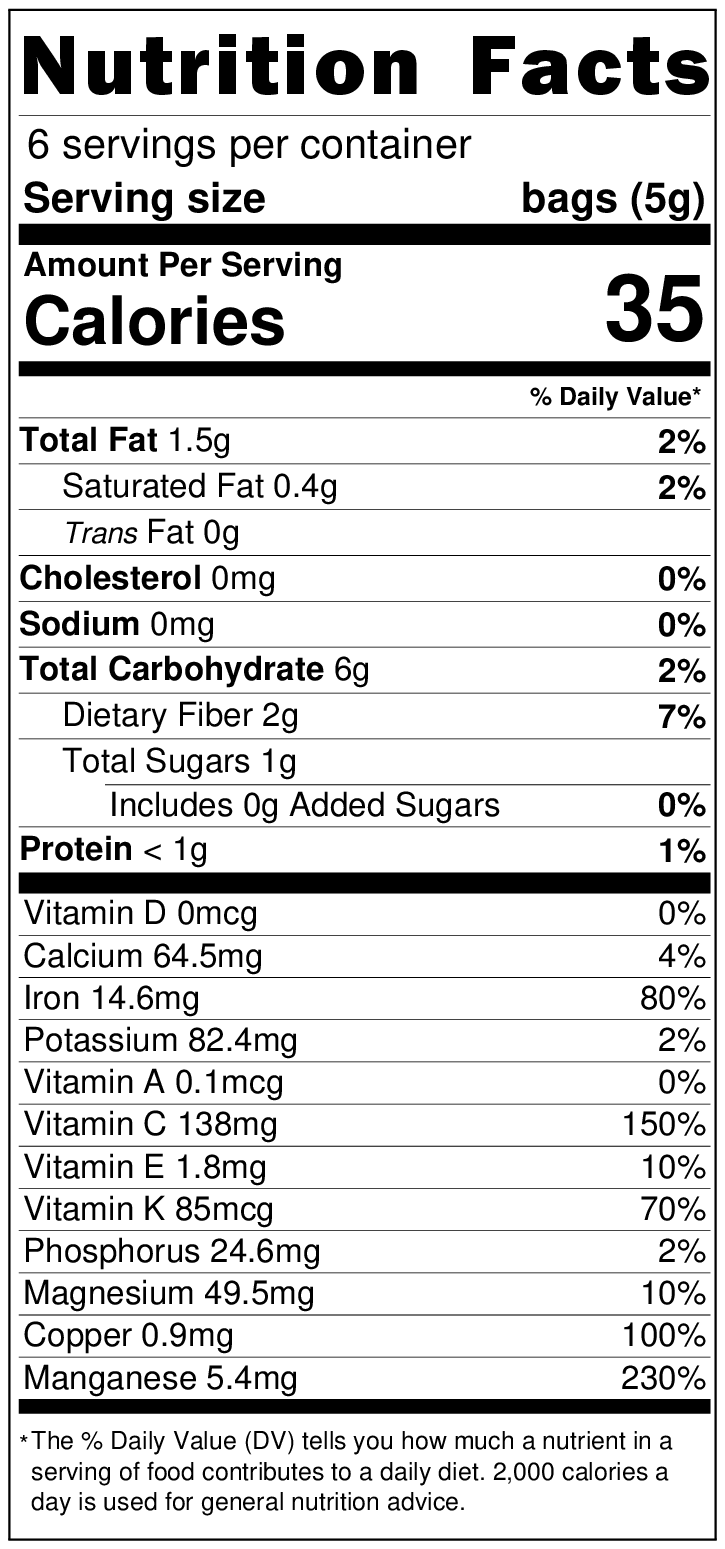 1-2 bags daily to smoothies, yogurt, porridge, cereal, etc. Use in baking or other recipes.